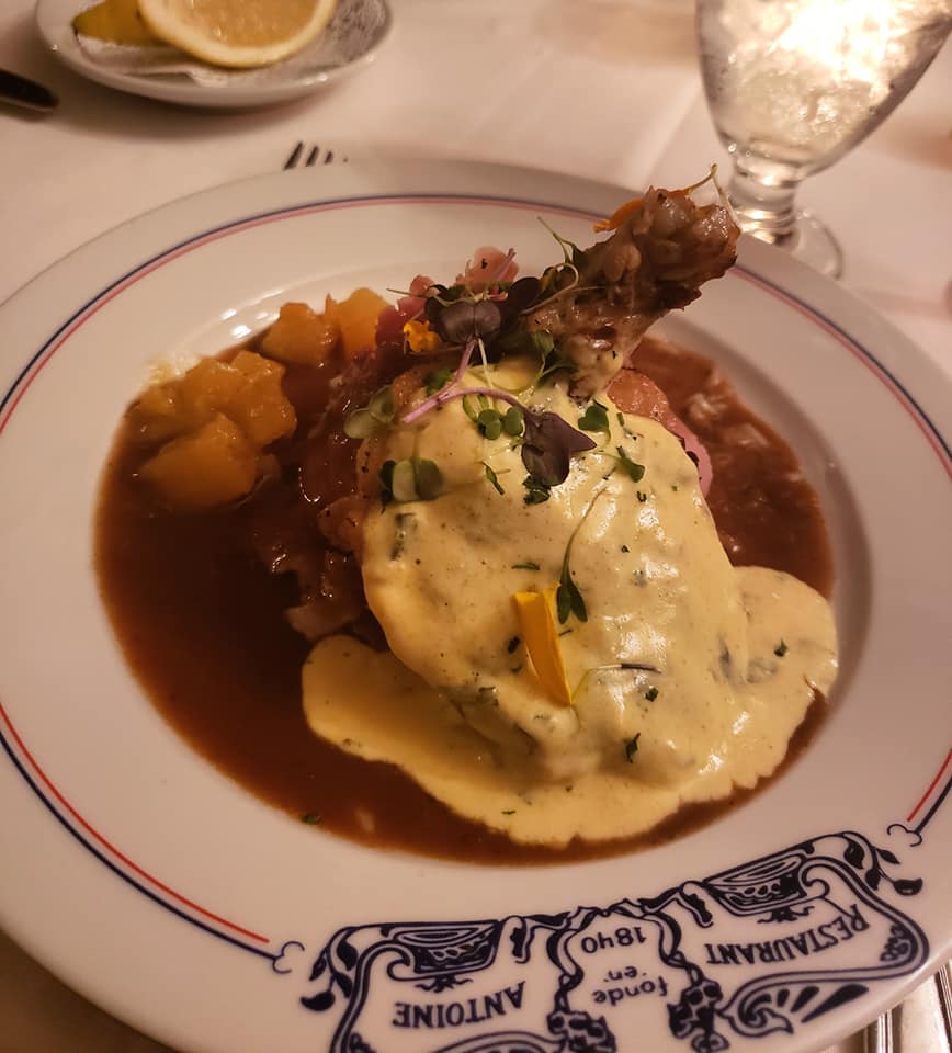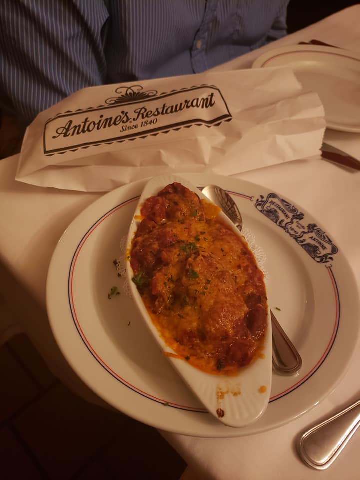 After our cocktails, we headed down Bourbon Street and made our way to Antoine’s on Saint Louis Street. We had a 7 pm reservation, and this was supposed to be the highlight of the trip! (And it was!!!)