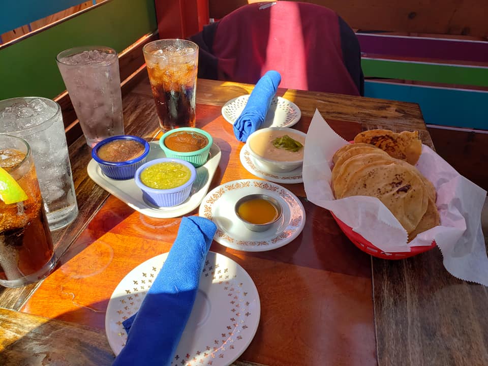 We started out with the the Salsas Trio: the fresca, the verde, and the salsa negra. And these homemade tortillas that were to die for. We also ordered the queso. (Because, like… when have I ever turned down queso?)