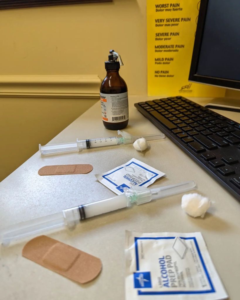 Yesterday, I ended up getting two cortisone shots in my knees – one in each. Yes, this is really what 49 is about. Especially when you have massive inflammation, excess weight, and years of ballet. But I feel fantastic today. No sleep, since it sort of jacks me up, so I stayed home with my little man.